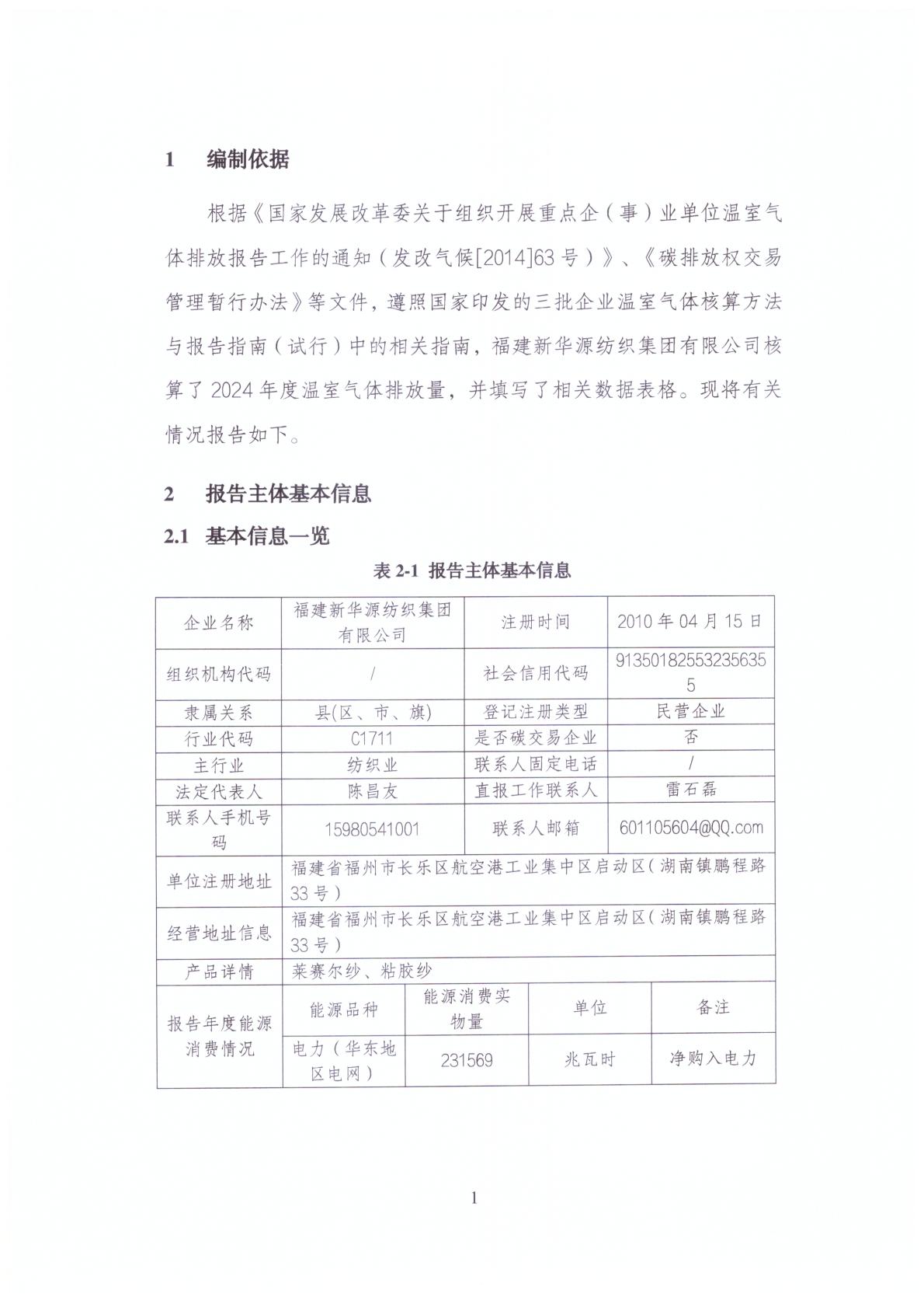 福建省立华智纺科技有限公司温室气体排放报告